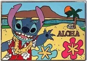 Stitch is a Limited Edition (LE) 250 pin from the Postcard Series pin series. It was originally released on , 2008 and was available from Disney Store US .