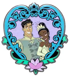 Tiana and Naveen is a Limited Edition (LE) 300 pin from the Royal Couple Collection pin series. It was originally released on , 2023 and was available from an Officially Licensed Disney trading pin vendor (see description for more information).
