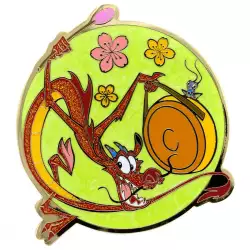 Mushu & Cri-Kee is a Limited Edition (LE) 300 pin from the Pink A La Mode (PALM) - Sidekick Medallions pin series. It was originally released on , 2022 and was available from an Officially Licensed Disney trading pin vendor (see description for more information).