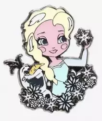 Elsa is an Open Edition pin from the Hot Topic - Princess Chibi Floral Blind Box pin series. It was originally released in November, 2022 and was available from Loungefly .