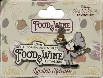 Chef Mickey is a Limited Release pin from the DCA Food and Wine Festival 2017 pin series. It was originally released on , 2017 and was available from Disneyland Resort .