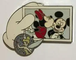 Pin features Mickey Mouse , Minnie Mouse and Tinker Bell