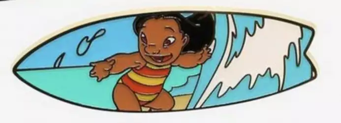 Lilo Surfing is an Open Edition pin from the BoxLunch - Lilo and Stitch Surfboard Portraits Blind Box pin series. It was originally released on , 2023 and was available from an Officially Licensed Disney trading pin vendor (see description for more information).