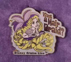 Disney Cruise Line - Rapunzel - Want a Hair Braid? is an Open Edition pin. It was originally released on , 2014 and was available from Disney Cruise Line .