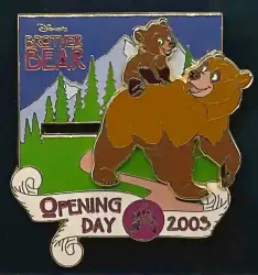 Opening Day - Koda and Kenai is a Limited Edition (LE) 2000 pin from the Brother Bear pin series. It was originally released in November, 2003 and was available from Walt Disney World .