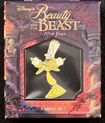 Lumiere is a Limited Edition (LE) 5000 pin from the Disney Gallery - Beauty and the Beast 10th Anniversary Se pin series. It was originally released in January, 2001 and was available from Disneyland Resort .