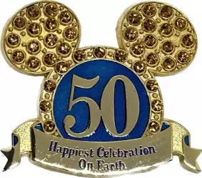 Gloden, Jeweled 50th Mickey Head Icon is an Open Edition pin from the Happiest Celebration on Earth pin series. It was originally released on , 2005 and was available from Walt Disney World .