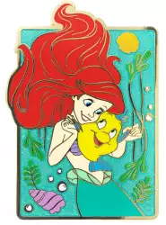 Ariel & Flounder is a Limited Edition (LE) 300 pin from the Pink A La Mode (PALM) - Best Friends pin series. It was originally released on , 2023 and was available from an Officially Licensed Disney trading pin vendor (see description for more information).