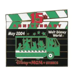 Disney’s MGM Studios 15th Anniversary Clapboards - Tram is a Limited Edition (LE) 1500 pin from the MGM Studios Cast Exclusive Anniversary pin series. It was originally released on , 2004 and was available from Walt Disney World .