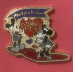 Won’t you be my…Valentine Mickey & Minnie is a Limited Edition (LE) 5000 pin from the Valentine's Day pin series. It was originally released in February, 2001 and was available from Multiple Sources (WDW, DLR, etc.).