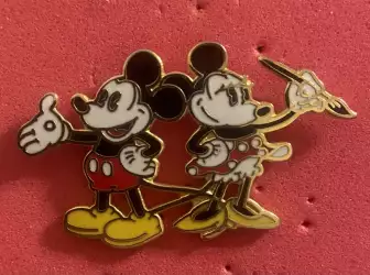 Pin features Mickey Mouse and Minnie Mouse