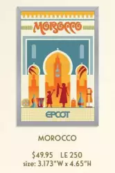 Morocco is a Limited Edition (LE) 250 pin from the EPCOT Poster Series pin series. It was originally released on , 2023 and was available from Walt Disney Imagineering .