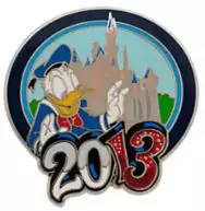 Donald Duck at Sleeping Beauty Castle is an Open Edition pin from the Starter Set 2013 pin series. It was available from Disneyland Resort .