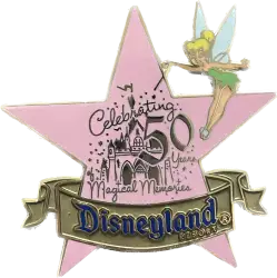 Celebrating 50 Years of Magical Memories - Hollywood Walk of Fame Disneyland Star with Tinker Bell is a Limited Edition (LE) 2005 pin from the Happiest Homecoming On Earth pin series. It was originally released on , 2005 and was available from Disney Studio Store Hollywood / Soda Fountain .