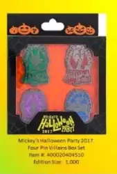 Mickey's Halloween Party - Villains four pin set, Ursula, Jafar, Maleficent and Evil Queen is a Limited Edition (LE) 1000 pin from the Halloween 2017 pin series. It was originally released on , 2017 and was available from Disneyland Resort .