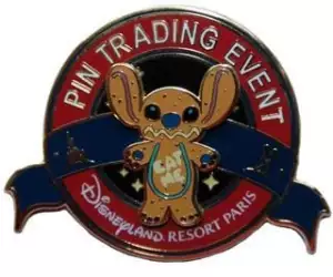 Stitch is a Limited Edition (LE) 400 pin from the Xmas Pin'Gerbread Event pin series. It was originally released on , 2008 and was available from Disneyland Resort Paris .