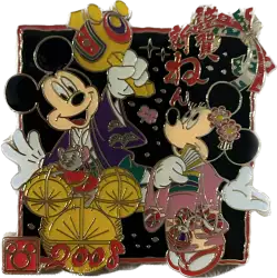 2008 - Mickey and Minnie is an Open Edition pin from the New Year's Eve/Day pin series. It was originally released on , 2007 and was available from Tokyo Disneyland Resort .