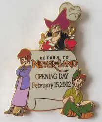 Opening Day is a Limited Edition (LE) 2000 pin from the Return to Neverland pin series. It was originally released on , 2002 and was available from Disneyland Resort .