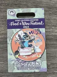 Don't Mess with the Chef — Stitch is a Limited Release pin from the DCA Food and Wine Festival 2023 pin series. It was originally released on , 2023 and was available from Disneyland Resort .