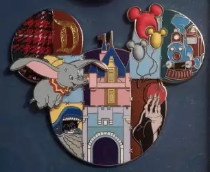 Pin features Mickey Mouse , Monstro , Dumbo and The Evil Queen from Dumbo (movie) and Pinocchio (movie)
