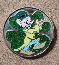 Dopey wearing green hat playing flute is a Limited Edition (LE) 800 pin from the St. Patrick’s Day 2007 Gold Coin Mystery Set pin series. It was originally released on , 2007 and was available from Disney Store US .