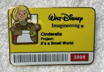 Cinderella ID Badge is a Limited Edition (LE) 300 pin from the I.D. Badge Series 3 pin series. It was originally released on , 2009 and was available from Walt Disney Imagineering .