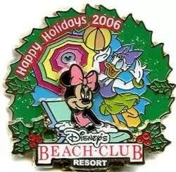 Beach Club Resort - Minnie and Daisy Wreath is a Limited Edition (LE) 750 pin from the Resort Holiday Collection 2006: Happy Holidays Wreaths pin series. It was originally released in December, 2006 and was available from Walt Disney World .