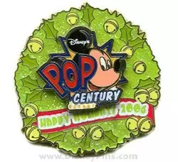 Pop Century Resort - Mickey Wreath is a Limited Edition (LE) 750 pin from the Resort Holiday Collection 2006: Happy Holidays Wreaths pin series. It was originally released in December, 2006 and was available from Walt Disney World .