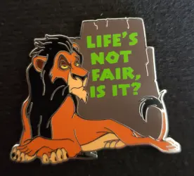 Scar - Life’s not Fair, is it? is a Limited Edition (LE) 1200 pin from the The Lion King 25th Anniversary Mystery Collection pin series. It was originally released on , 2019 and was available from Multiple Sources (WDW, DLR, etc.).