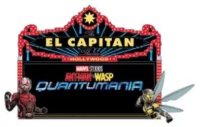 Ant-Man and the Wasp Quantumania is a Limited Edition (LE) 400 pin from the El Capitan Marquee Series pin series. It was originally released on , 2023 and was available from Disney Studio Store Hollywood / Soda Fountain .