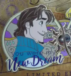 Flynn Rider is a Limited Edition (LE) 500 pin in the Love is Light: Rapunzel and Flynn set 2-pin set from the Love is an Adventure Event pin series. It was originally released on , 2017 and was available from Walt Disney World .