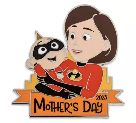 2023 - Elastigirl and Jack-Jack is a Limited Release pin from the Mother's Day pin series. It was originally released on , 2023 and was available from Multiple Sources (WDW, DLR, etc.).