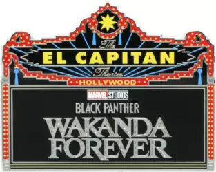 Black Panther Wakanda Forever is a Limited Edition (LE) 400 pin from the El Capitan Marquee Series pin series. It was originally released on , 2022 and was available from Disney Studio Store Hollywood / Soda Fountain .