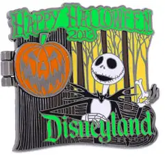Happy Halloween - Jack Skellington and Door Hinged Pin is a Limited Edition (LE) 3000 pin from the Halloween 2013 pin series. It was originally released on , 2013 and was available from Disneyland Resort .
