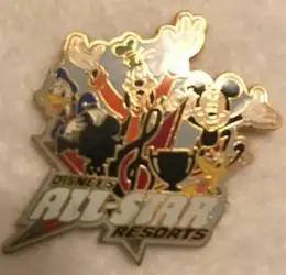 Donald, Goofy, Mickey and Pluto is an Open Edition pin from the Disney's All-Star Resorts pin series. It was originally released on , 2006 and was available from Walt Disney World .