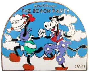 The Beach Party (1931) is a Limited Edition (LE) 2400 pin from the Marimo Craft (マリモクラフト) - History of Art Series pin series. It was originally released on , 2002 and was available from an Officially Licensed Disney trading pin vendor (see description for more information).