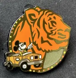 Safari Mickey with Tiger is a Limited Release pin from the Animal Kingdom 25th Anniversary Mystery Collection pin series. It was originally released on , 2023 and was available from Walt Disney World .