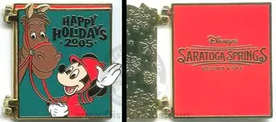 Saratoga Springs Happy Holidays 2005 is a Limited Edition (LE) 1000 pin from the Resort Holiday Collection 2005: Greeting Cards pin series. It was originally released on , 2005 and was available from Walt Disney World .