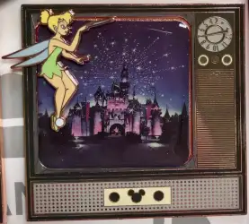 Sleeping Beauty Castle and Tinker Bell Mini Jumbo is a Limited Edition (LE) 500 pin in the Disneyland Channel 28 TV Jumbo Pin Set 3-pin set from the Channel 28 pin series. It was originally released on , 2018 and was available from Disneyland Resort .