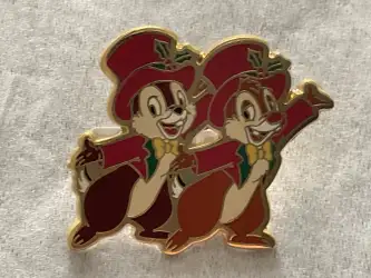 Chip & Dale Wearing Red Top Hats and Jackets is an Open Edition pin from the Harborside Christmas pin series. It was originally released in December, 2003 and was available from Tokyo Disneyland Resort .