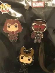 Scarlet Witch (Wanda), Captain America (Sam), and Loki is an Open Edition pin from the Funko POP! - Marvel pin series. It was originally released on , 2022 and was available from an Officially Licensed Disney trading pin vendor (see description for more information).