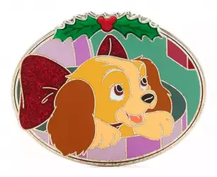Holly Border - Puppy Lady in Hat Box is a Limited Release pin from the Christmas 2022 pin series. It was originally released in November, 2022 and was available from Multiple Sources (WDW, DLR, etc.).