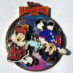Costumed Mickey and Minnie Spinner is a Limited Release pin from the Halloween 2019 pin series. It was originally released on , 2019 and was available from Tokyo Disneyland Resort .