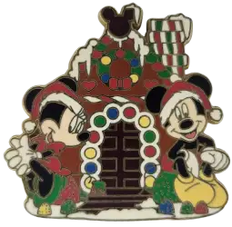 Mickey and Minnie With Gingerbread House is an Open Edition pin from the Christmas 2003 pin series. It was originally released in November, 2003 and was available from Walt Disney World .