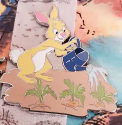 Rabbit Watering Carrots ONLY is an Open Edition pin from the Winnie the Pooh Pin Trading Starter Set pin series. It was originally released in January, 2023 and was available from Multiple Sources (WDW, DLR, etc.).