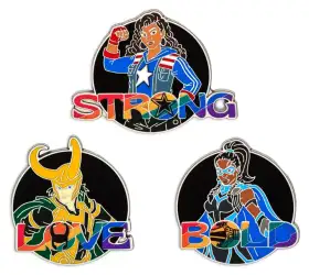 Marvel Pride - Loki, America Chavez and Valkyrie is an Open Edition 3-pin set from the Disney Pride Collection 2023 pin series. It was originally released on , 2023 and was available from Multiple Sources (WDW, DLR, etc.).
