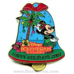 Polynesian Resort - Hula Minnie Mouse Bell is a Limited Edition (LE) 750 pin from the Resort Holiday Collection 2007: Bells pin series. It was originally released on , 2007 and was available from Walt Disney World .
