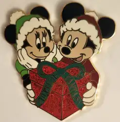 Mickey and Minnie with Present is a Limited Edition (LE) 1500 pin from the Yuletide Fantasy Tour Gift pin series. It was originally released in November, 2006 and was available from Walt Disney World .
