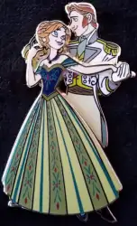 Anna and Hans Dancing is a Limited Edition (LE) 400 pin from the Frozen Summer Sing-Along Release pin series. It was originally released on , 2014 and was available from Disney Studio Store Hollywood / Soda Fountain .