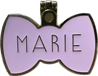 Marie Bow Tag is an Open Edition pin from the BoxLunch Exclusive - Disney Pets Hinged Name Tag Mystery Collection pin series. It was originally released on , 2022 and was available from Loungefly .
